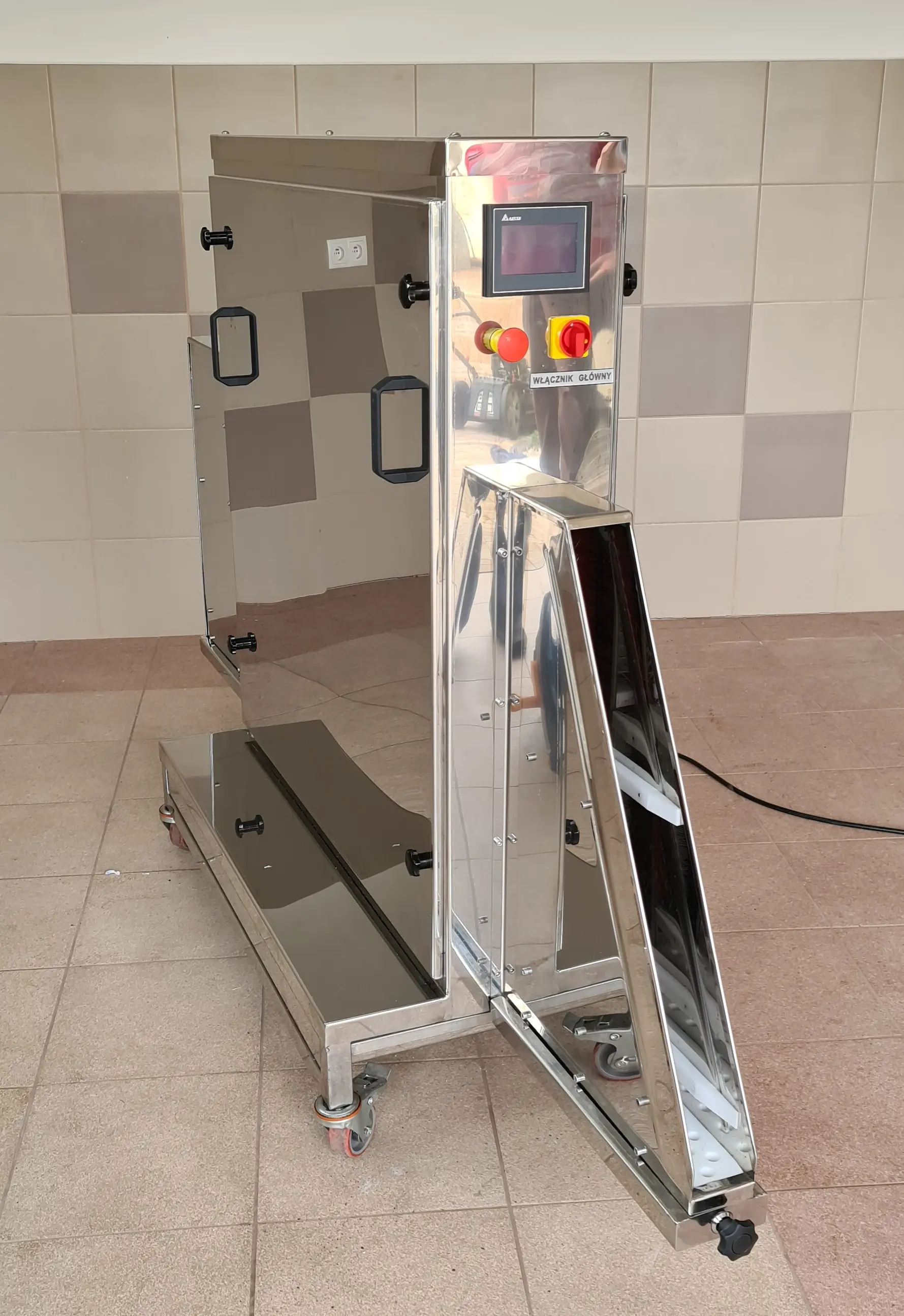Maszyna służy do czyszczenia blach piekarskich bez rantowych, z jednym, dwoma, trzema i czterema rantami. Mogą to być blachy gładkie jak i perforowane.